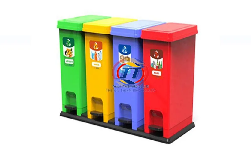 Thùng rác phân loại rác bằng màu sắc là một giải pháp đơn giản nhưng hiệu quả để khuyến khích mọi người cùng tham gia phân loại rác tại nguồn. Loại thùng rác này có thể làm bằng nhựa, inox hoặc composite và thường có nhiều ngăn, mỗi ngăn được dán nhãn hiệu hoặc có màu sắc khác nhau để phân loại các loại rác như rác hữu cơ, rác tái chế, rác nguy hại.