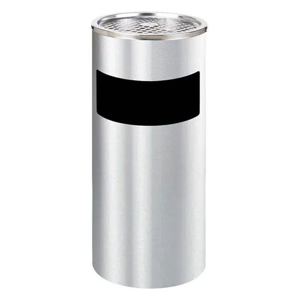Thiết kế hình trụ tròn sẽ giúp bạn tiết kiệm được rất nhiều diện tích khi sử dụng. Phần khay gạt tàn được đặt ở trên nắp thùng rác và được thiết kế với tấm lưới chắn rất tiện lợi.