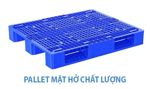 Pallet mặt hở: Là loại pallet nhựa có bề mặt được thiết kế đục lỗ trong một kích thước nhất định. Nguyên nhân chủ yếu của loại thiết kế này là để tiết kiệm nguyên liệu và giảm giá thành sản phẩm. Tuy nhiên, nếu so với pallet mặt bít thì pallet mặt hở vẫn đáp ứng đầy đủ những nhu cầu sử dụng thông thường.