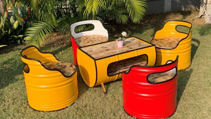 Các ý tưởng tái chế thùng phuy cũ thành bàn ghế