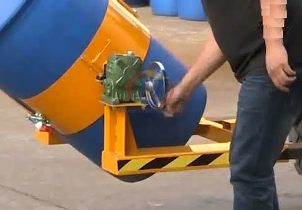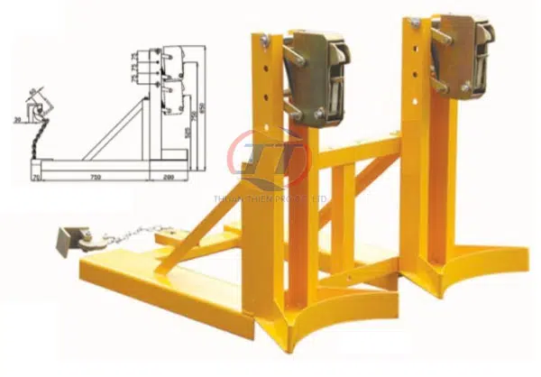 Bước tiếp theo là di chuyển xe nâng lại gần với thùng phi sắt. Sau đó, nâng mỏ kẹp lên để mỏ kẹp bám chắc vào thành của thùng phi. Nhờ vào lò xo trợ lực của xe nâng, mỏ kẹp sẽ nhanh chóng nâng thùng phi lên với một độ cao nhất định, phù hợp với độ cao và kích thước của pallet chống tràn dầu.