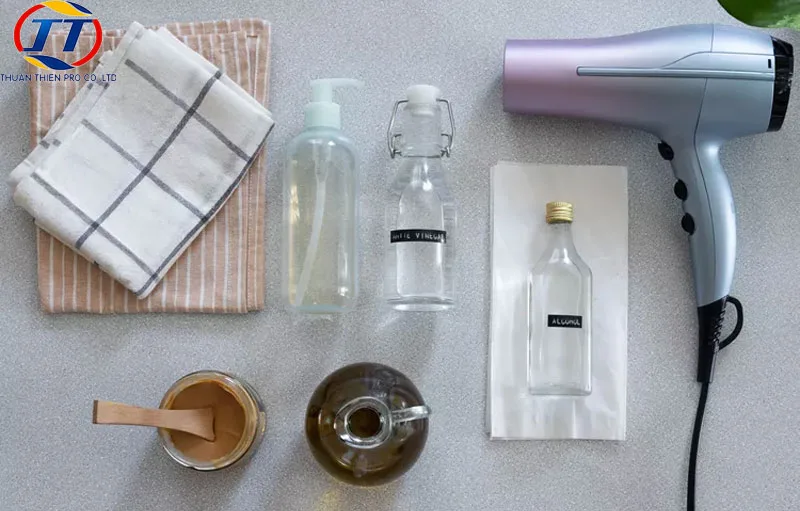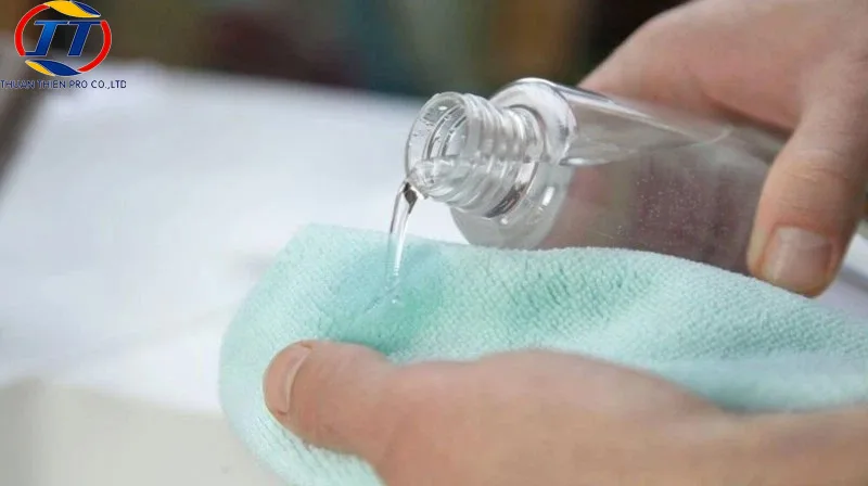 - Nhúng khăn mềm vào dung dịch và lau lên vết keo.