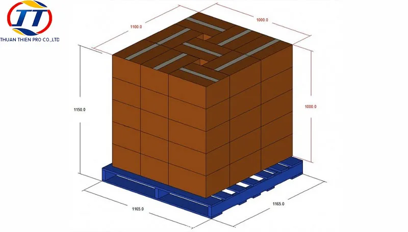(Số lượng thùng trên mỗi tầng) x (Số lượng tầng) = Số lượng thùng trên pallet