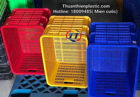 Rổ nhựa công nghiệp được ứng dụng nhiều ngành chế biến thực phẩm, đựng linh kiện điện tử, rau củ quả, đựng quần áo may mặc, thủy hải sản… Sản phẩm được sản xuất từ chất liệu nhựa cao cấp và được thiết kế với nhiều kiểu dáng, kích thước đa dạng để quý khách hàng