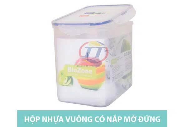 2. Hộp nhựa vuông đựng thực phẩm có nắp mở đứng