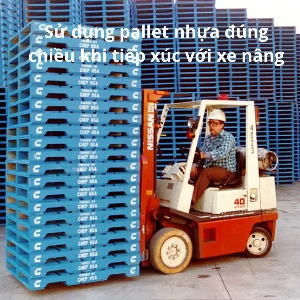 Sử dụng pallet nhựa đúng chiều khi tiếp xúc với xe nâng