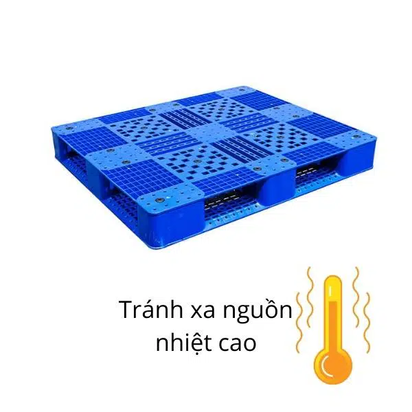 Hình dạng, chức năng và độ bền của pallet nhựa có thể bị ảnh hưởng trực tiếp bởi nhiệt độ cao. Max nhiệt độ mà sản phẩm này chịu được là 120 độ C, cao hơn rất nhiều so với pallet gỗ hay pallet giấy nhưng nếu vượt quá ngưỡng max, pallet nhựa có thể sẽ bị biến dạng và giảm tuổi thọ sử dụng. Vì vậy, khi không sử dụng hãy bảo quản pallet nhựa ở nơi khô thoáng, tránh nơi có nguồn nhiệt cao và có hóa chất.