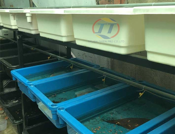 Thùng nhựa nuôi cá hiện đang là mô hình phổ biến được nhiều hộ gia đình và các doanh nghiệp có quy mô vừa và nhỏ áp dụng. Không chỉ có chi phí đầu tư ban đầu thấp, mà mô hình khay nhựa nuôi cá này đem lại hiệu quả cao, giúp cá mau lớn và khỏe mạnh, thu lại nguồn vốn nhanh.
