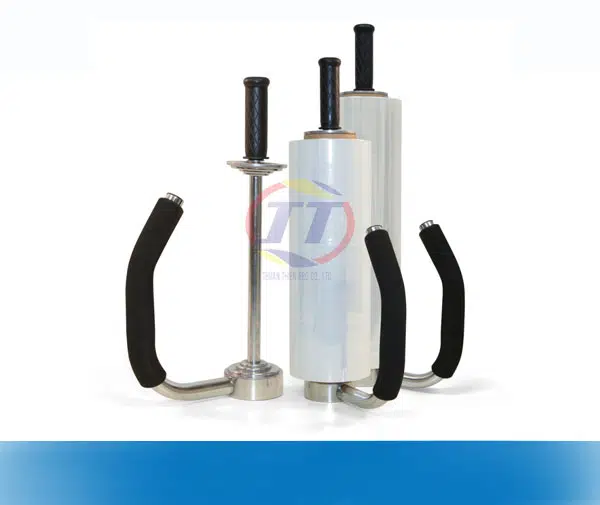 - Dụng cụ quấn màng co bằng tay có tay cầm: Thường được dùng với các cuộn pe lớn giúp bọc hàng hoá có kích thước vừa và lớn một cách dễ dàng.