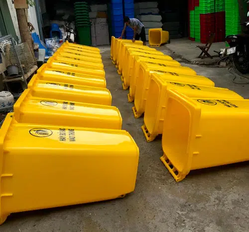 Thùng rác y tế được sản xuất với nhiều kích thước, kiểu dáng khác nhau. Với khu cách ly tập trung đông người, bạn nên sử dụng thùng rác có dung tích 120L, 240L, 660L nhằm đảm bảo thu gom toàn bộ rác thải theo đúng tiêu chuẩn.