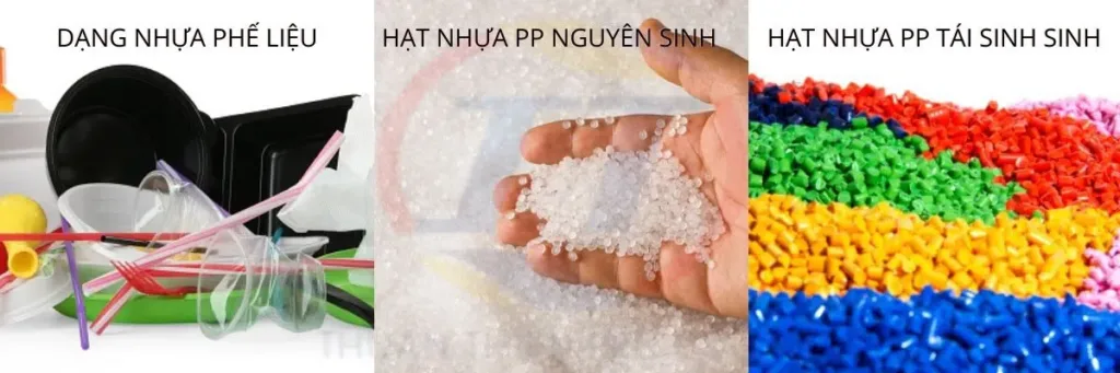 Dạng nhựa phế liệu: Nhựa PP có khả năng tái chế từ các loại nhựa đã qua sử dụng.