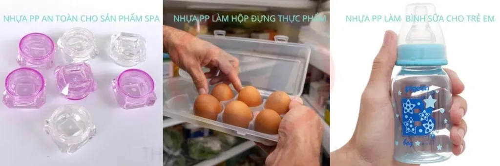 Nhựa Polypropylen là một trong các loại nhựa được đánh giá cao về độ an toàn, được ứng dụng rộng rãi trong đời sống. Với quy trình tái chế ở nhiệt độ 250 độ C,  mục đích loại bỏ chất ô nhiễm và hóa rắn nhựa ở nhiệt độ 140 độ C, đồng thời trong quá trình tái chế thì nhựa Polypropylen còn được nhà sản xuất pha thêm PP nguyên chất, với tỷ lệ phù hợp là 50 – 50. Trong nhựa Polypropylen không tồn tại các hợp chất hay độc tố nên không ảnh hưởng tới sức khỏe con người, vì vậy người tiêu dùng hãy tin sử dụng các sản phẩm được chế tác từ loại nhựa này.