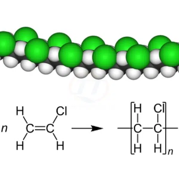 Nhựa PVC có tên gọi đầy đủ là Polyvinyl Chloride, là một loại nhựa nhiệt dẻo được tạo thành từ phản ứng trùng hợp vinylchloride có công thức hóa học là (̵CH2=CHCl)̵. Khối lượng riêng của nhựa PVC vào khoảng 1,7 g/cm3, con số này có thể chênh lệch tùy vào từng loại nhựa PVC khác nhau nhưng không đáng kể.