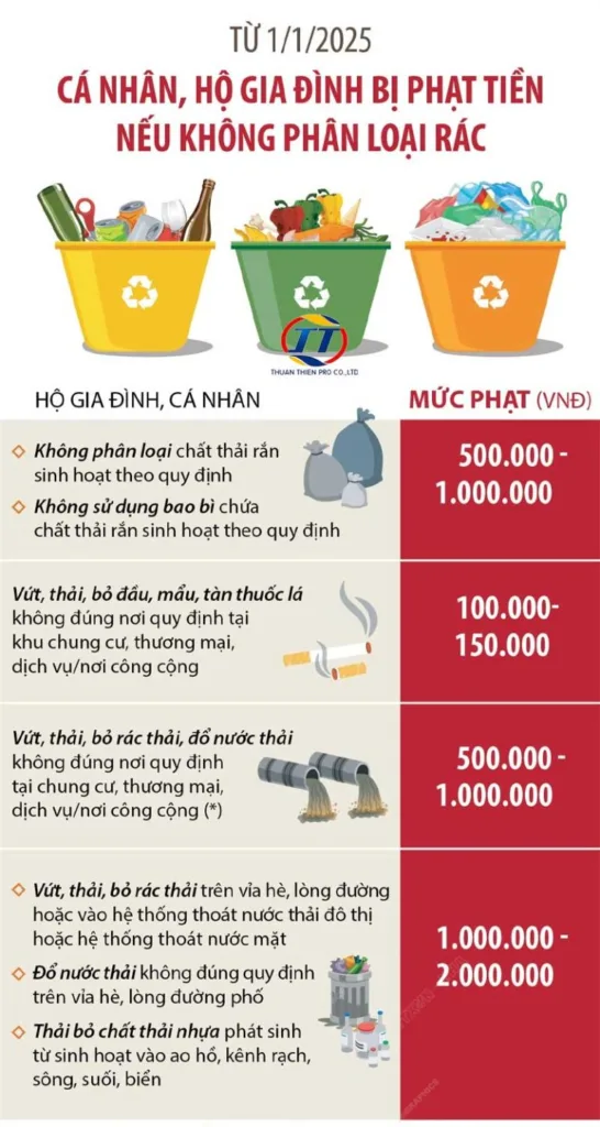 Các mức phạt khi không phân loại rác được quy định như sau: