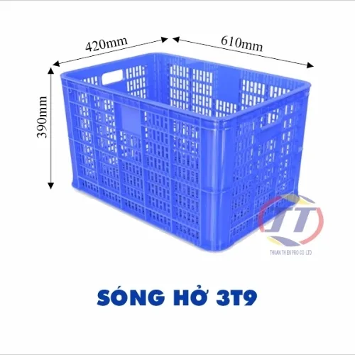 Sóng hở 3t9 hay còn gọi là Thùng nhựa rỗng 3T9 là dạng thùng rỗng nan thưa hình chữ nhật cao 3 tấc 9, nó phù hợp dùng khi cần chứa các loại hàng hóa nặng và lớn.