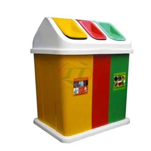 Thùng rác 3 ngăn composite gồm 3 ngăn với 3 màu sắc khác nhau tương ứng với từng loại rác được phép bỏ vào: Ngăn màu xanh lá cây dùng để chứa rác thải hữu cơ có khả năng phân hủy (lá cây, rau củ, thức ăn thừa…), Ngăn màu đỏ tương ứng với rác thải không phân hủy, và có thể tái chế được như (vỏ lon, chai nhựa…) và cuối cùng ngăn màu vàng tương ứng với rác thải nguy ngại như bơm kim tiêm, mảnh sành, sứ, thủy tinh vỡ, lưỡi dao cạo…