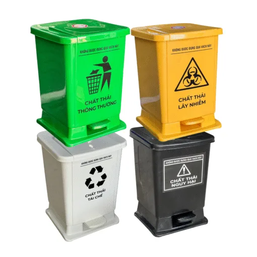 - Thùng đạp chân màu xanh để đựng chất thải thông thường.
