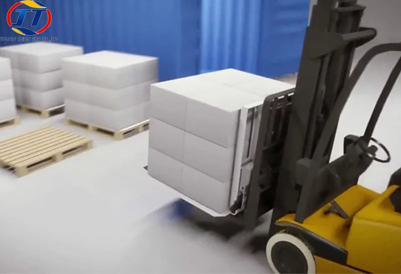 - Đặt hàng hóa cân đối: Khi xếp hàng hóa lên Slip Sheet, đảm bảo rằng chúng được phân bố đều trên bề mặt để tránh lệch tâm khi di chuyển.
