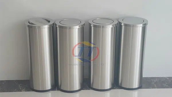Ngoài thùng rác nắp lật bằng nhựa, Thuận Thiên Plastic còn cung cấp thùng rác Inox nắp lật A35 – G được làm từ inox 304 có khả năng chống ăn mòn, chống oxy hóa, chống thấm nước và mang lại tính thẩm mỹ cao. Mẫu thùng rác này có kích thước nhỏ gọn và phù hợp để đặt trong văn phòng, nhà ở, sảnh khách sạn….