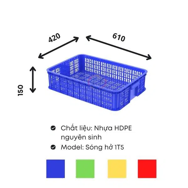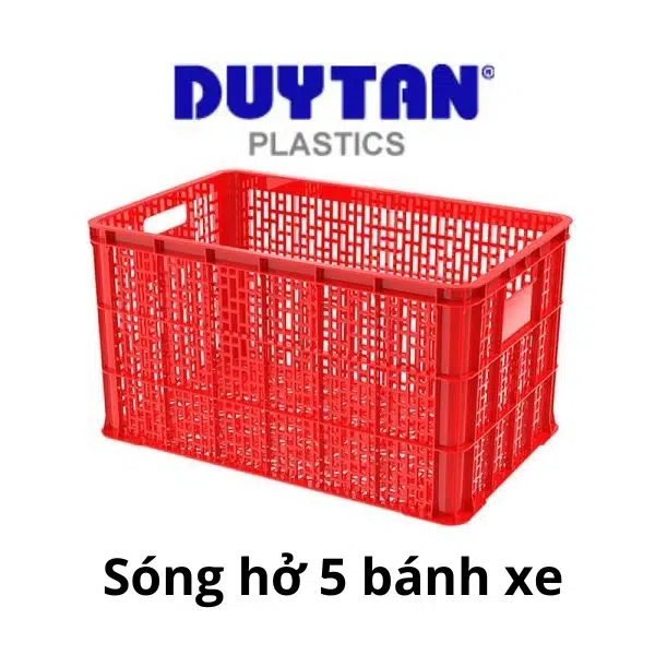 Sóng hở 5 bánh xe được thiết kế theo hình chữ nhật dạng lưới, thành mặt bên có tay cầm, phần đáy được gắn 5 bánh xe nên thuận tiện hơn trong việc di chuyển. Toàn bộ phần khung đều được làm hoàn toàn bằng nhựa cao cấp, đảm bảo chắc chắn và chịu được tải trọng lớn. Sản phẩm được dùng để đựng hàng hóa, nguyên vật liệu trong các khu công nghiệp, công xưởng, kho bãi, nông trại,….