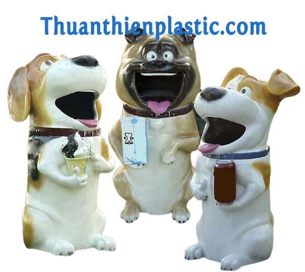 - Chất liệu của những sản phẩm thùng rác hình thú này thường là nhựa cốt kết hợp sợi thủy tinh, hay còn gọi là nhựa composite. Một số sản phẩm làm bằng gốm sứ tuy nhiên không phổ biến và giá thành thường cao.