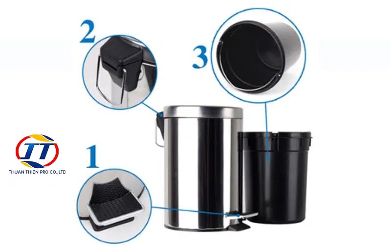 - Thùng rác inox đạp chân 30L là một sản phẩm lý tưởng để xử lý rác thải trong các không gian như gia đình, văn phòng, hay ngay cả trong phòng nghỉ tại khách sạn. Sản phẩm này rất thuận tiện và hiện đại.