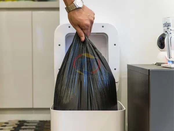 Thùng rác thông minh có thể sử dụng túi nilon thông thường hoặc túi rác chuyên dụng để đựng rác. Quý khách hãy mở rộng túi rác, bỏ vào thân thùng rồi sau đó đặt nắp thùng lên trên.
