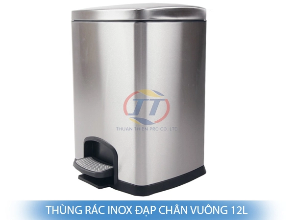 Thùng rác inox đạp chân 12 lít vẫn được thiết kế kiểu dáng vuông với lớp vỏ inox cao cấp, chống hoen gỉ cực tốt, tuy nhiên so với những mẫu thùng rác khác, sản phẩm này được ưa chuộng hơn nhờ dung tích tương đối nhỏ, mẫu mã đẹp, có thể sử dụng cho cả phòng khách, phòng ngủ, phòng bếp, bàn làm việc,…. mà không chiếm quá nhiều diện tích.