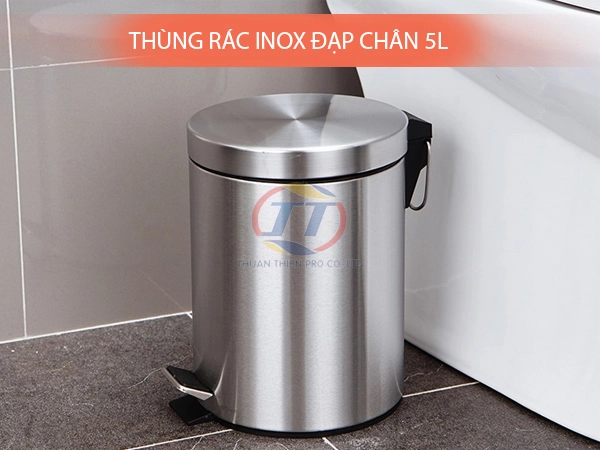 Thùng rác inox 5l kiểu đạp chân được làm từ inox siêu bền, chịu được va đập tốt. Với màu sắc trang nhã, lịch sự cùng dung tích nhỏ, sản phẩm sẽ phù hợp đặt dưới bàn làm việc hay trong phòng ngủ,…. Thùng rác cũng được thiết kế lớp ruột bên trong có thể tách rời cùng với quai xách tiện lợi, giúp người dùng dễ dàng trong việc đổ rác và vệ sinh thùng rác.
