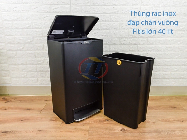 Thùng rác inox đạp chân vuông Fitis lớn 40 lít