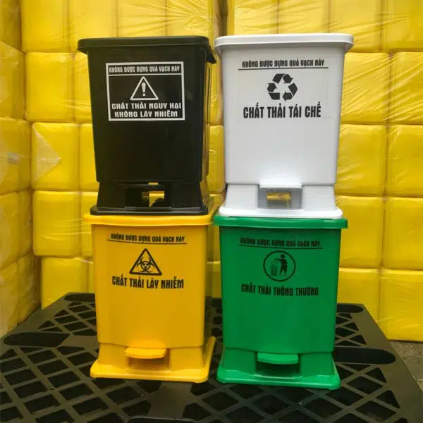 - Có 4 màu: đen, trắng, vàng, xanh để phân loại các chất thải y tế theo quy định.