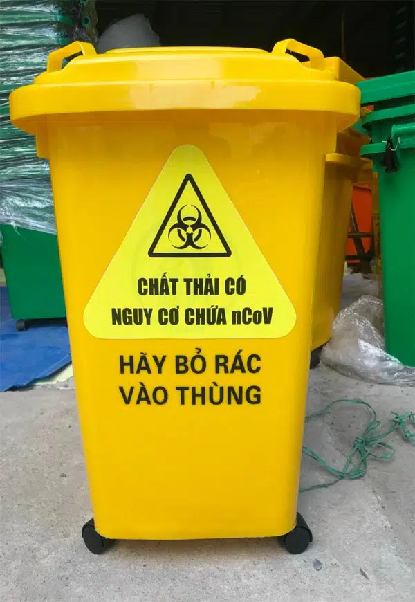 - Thùng rác y tế dung tích 240 lít có 4 màu đen xanh lá, vàng, trắng được dùng để phân loại các chất thải theo đúng quy định.